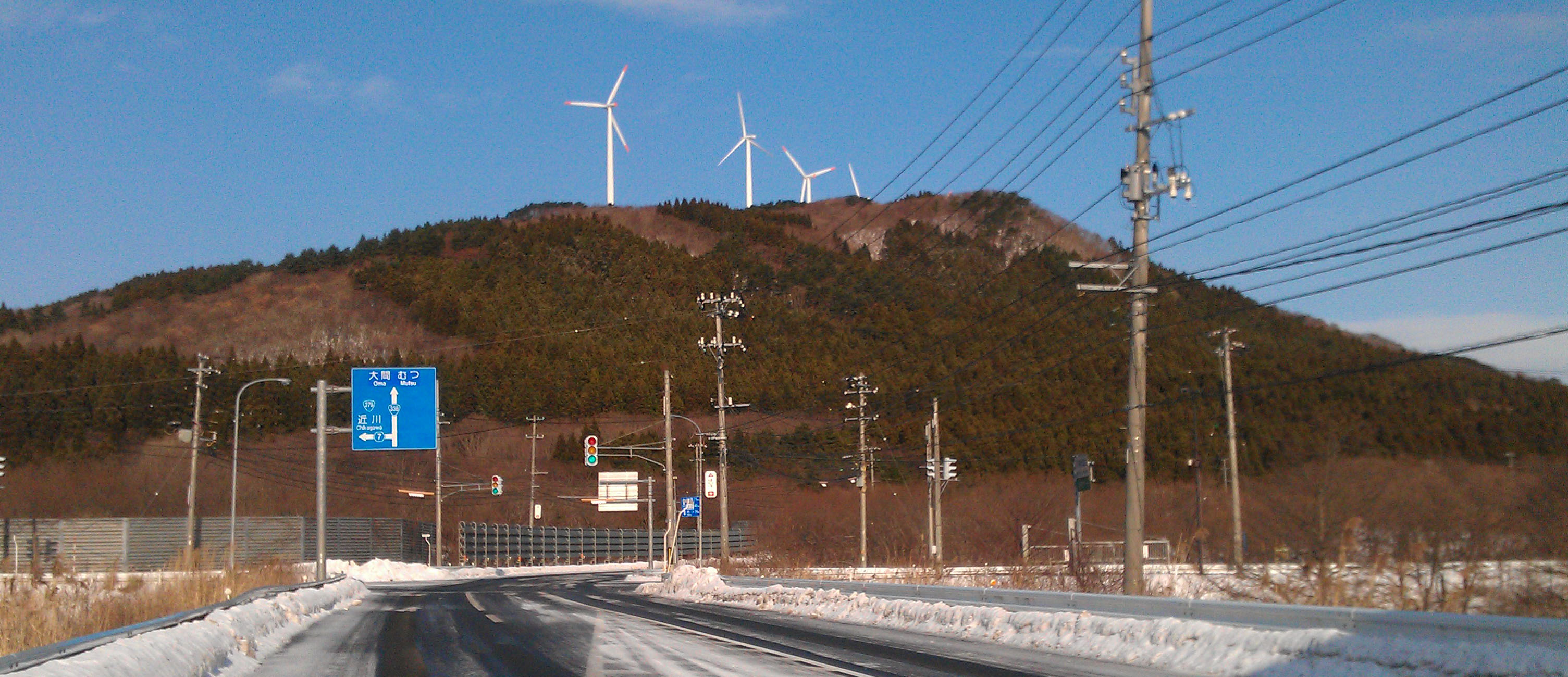 写真の風車の下の黒々とした林は父の植林した杉林だ。山が大好きだった父自身の手で最終間伐を終え、たっぷりと間隔を取った林相は周囲の、手の入らない林とは歴然の差だ。植林後まだ50年に少し満たないらしい。これから時間を経るごとに立派な木に育っていくだろう。父の心が残っている林だ。
