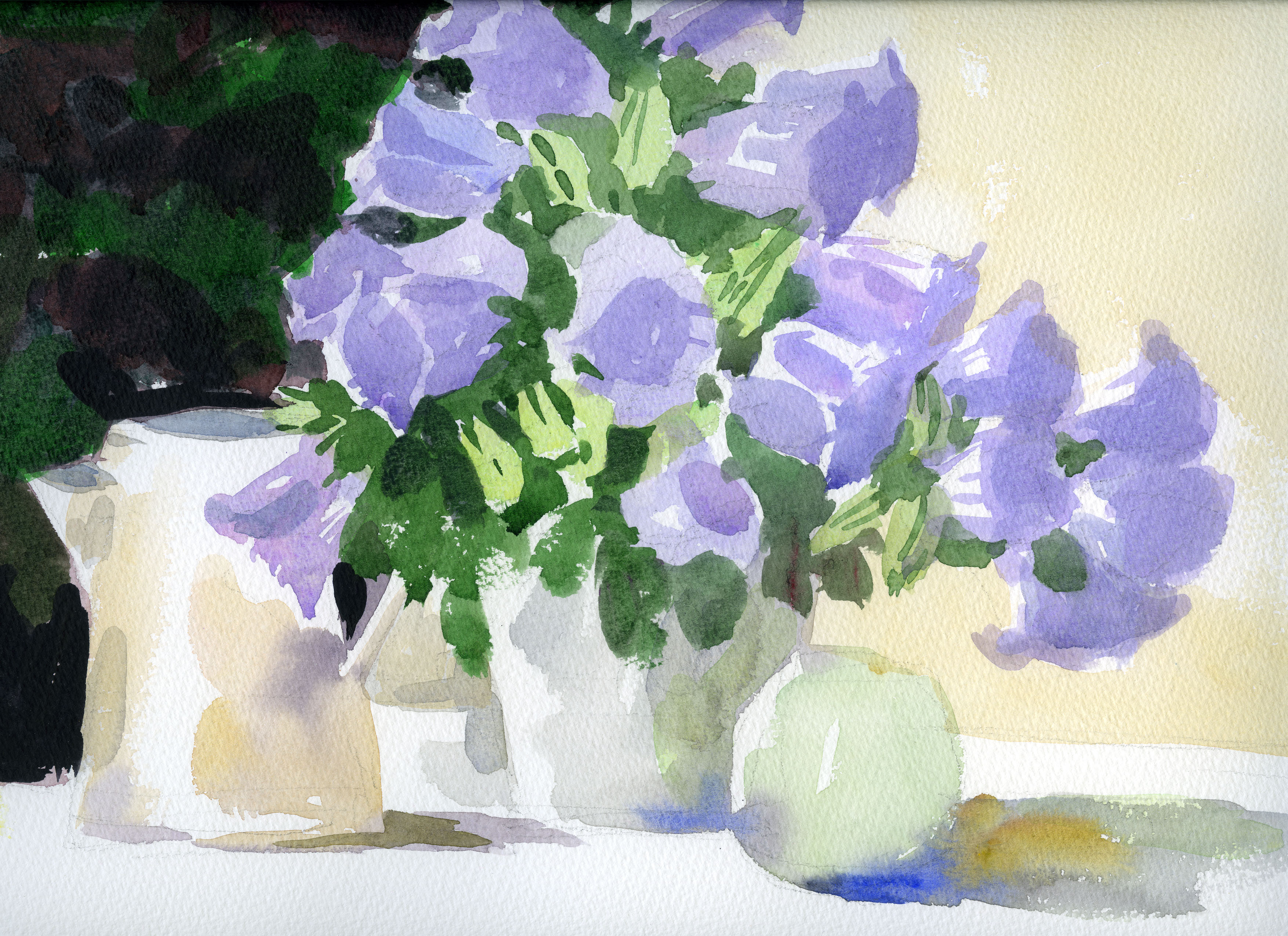 அழைத்தது வேடிக்கை Campanula மற்றும் நீல ஆப்பிள் வெளிர் F6 水彩は難しい。小学高学年で初めて水彩絵の具に触れ、大きな壁にぶつかった苦しさを思い出す。 それから50年近くになるが、楽しさと可能性を感じてきたのはごく最近のことだ。厄介で美しく、軽くて深い、この水彩の魅力を引き出す、しかも出来るだけ「楽ちんな方法」を発見したいものだ。