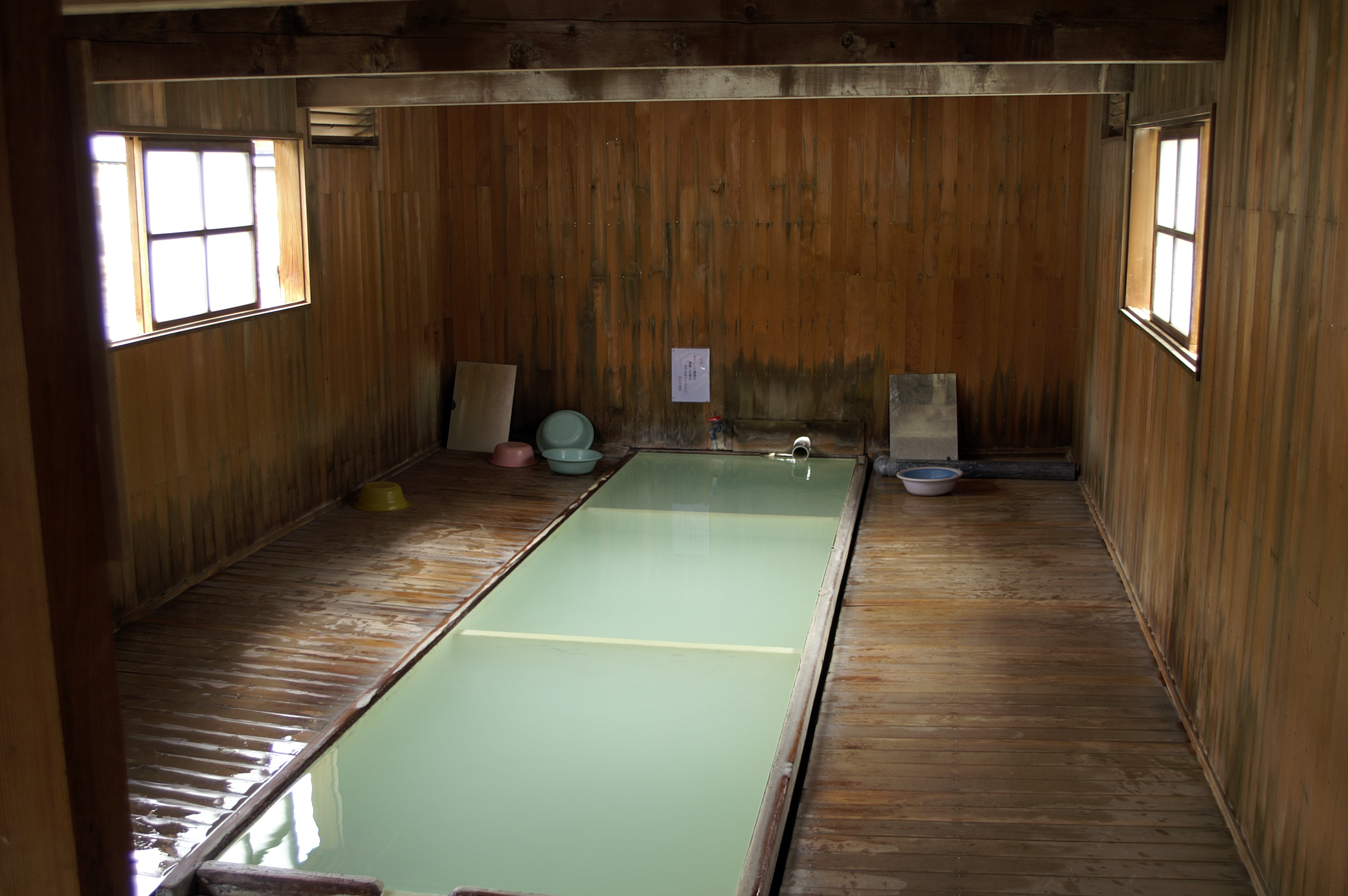恐山には地獄も極楽も目白押しだが本当の極楽は実は温泉ではないだろうか?建物の形にはなっているがまあ露天風呂の延長のようなもの恐山の山地内には無料で入れる温泉は現在4つ山門を潜るとまっすぐ地蔵堂の方へ敷石の道を行く中門を抜けたところに3つの湯屋がある一番左に女湯と書いてあるが入ったことはない