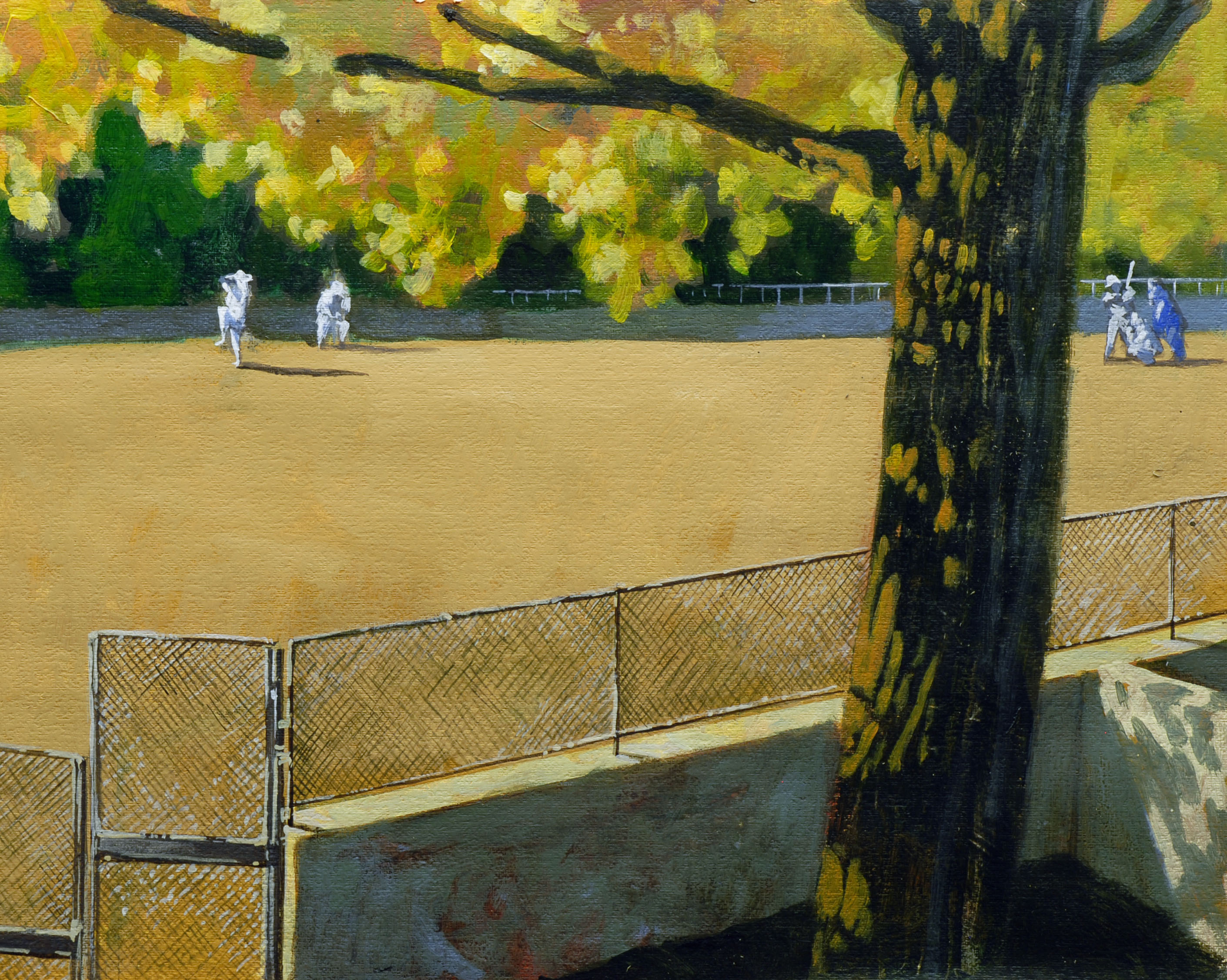 Baseball field. Softly autumn-sunlight is downpouring there and on players. “Silent leniently” is the Theme of this work.