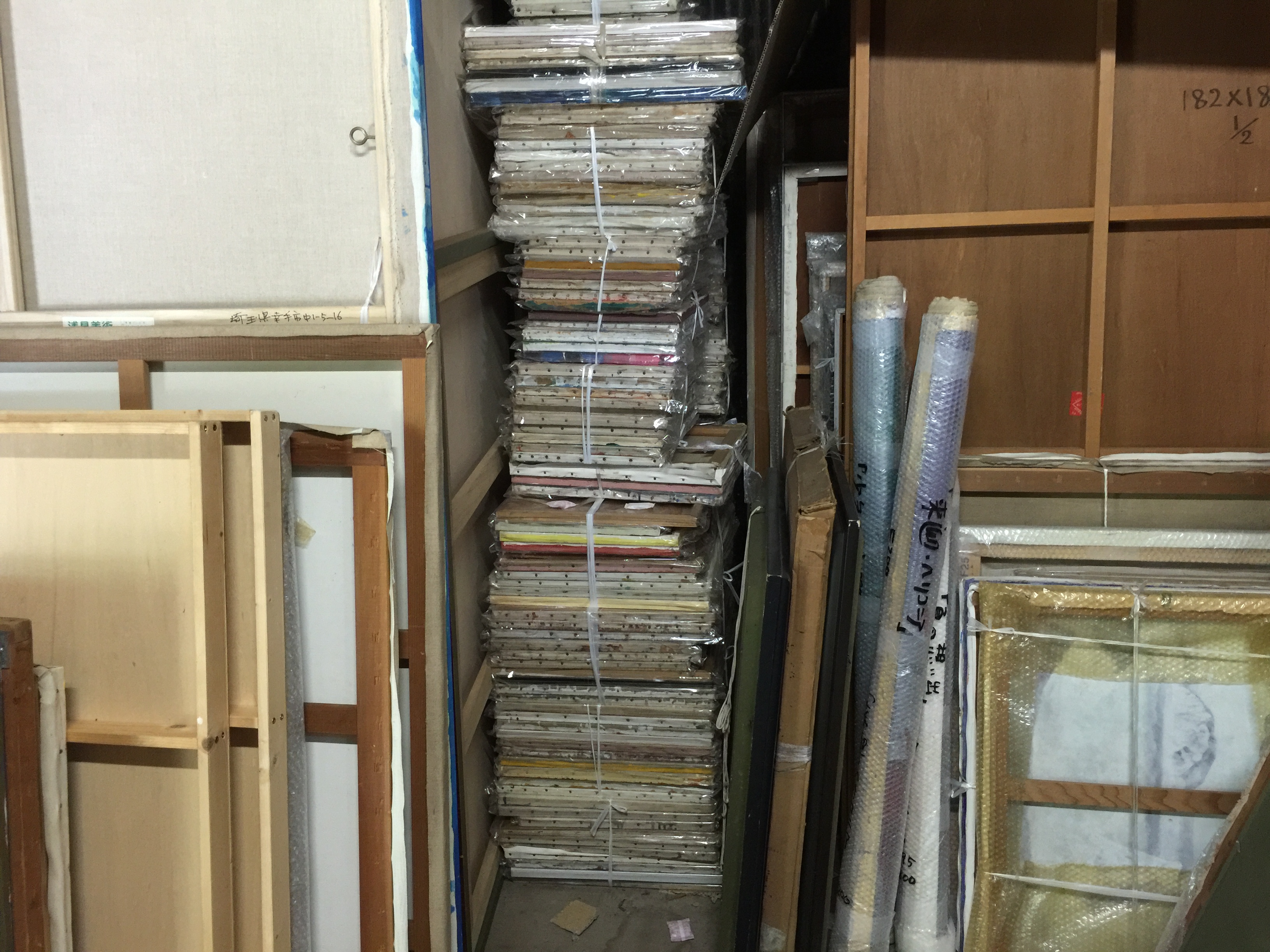5年間使わせて貰っている倉庫を今年度一杯で引き払う事になりただいま整理中ここには大作から小品までおよそ300点ほど保管してある