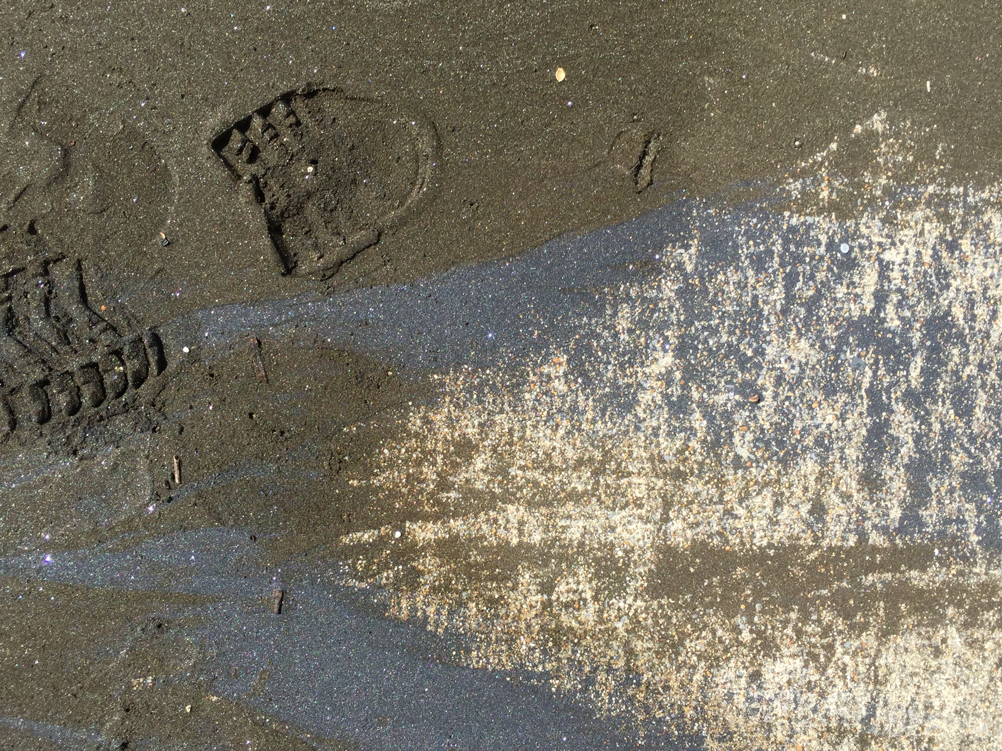 Överflödig järnsand ligger på Shimokita -halvön.。Det fanns till och med en plan för att bygga ett stålverk tidigare.。På bilden ser järnsanden något blåaktig ut.。Gå barfota på järnsand rostad i sommarsolen、Det var som tortyr som gick på en varm järnplatta。