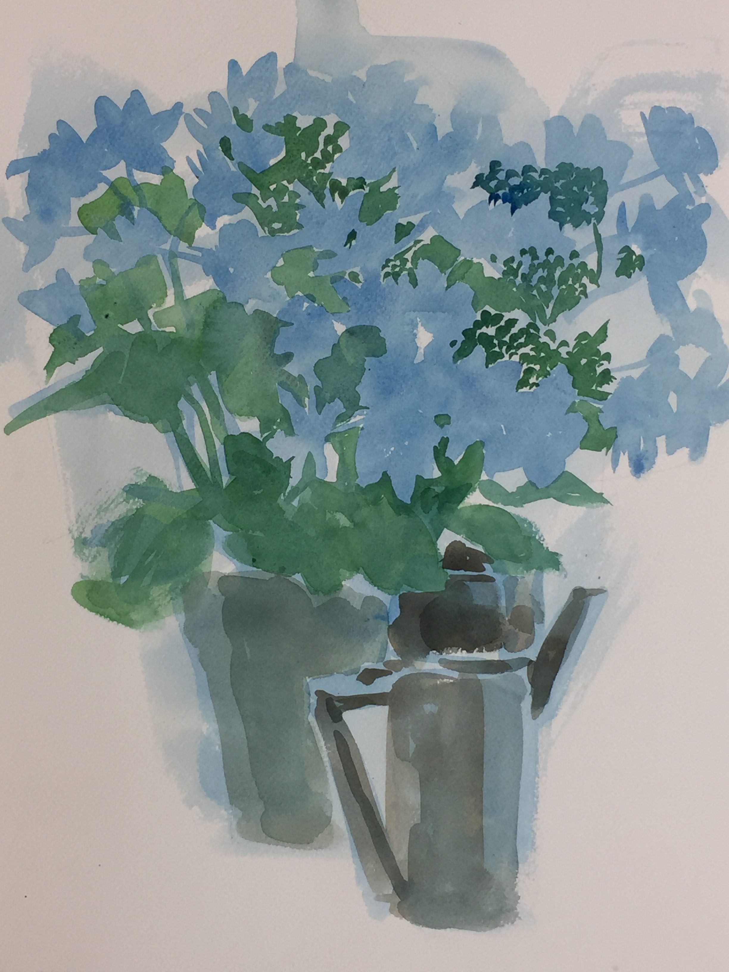 La pluvo ekde hieraŭ nokte、Daŭre pluvas, plifortiĝante de tempo al tempo.。En tiaj tagoj, estas facile desegni akvarelojn ĉar ili ne tro sekiĝas.。
