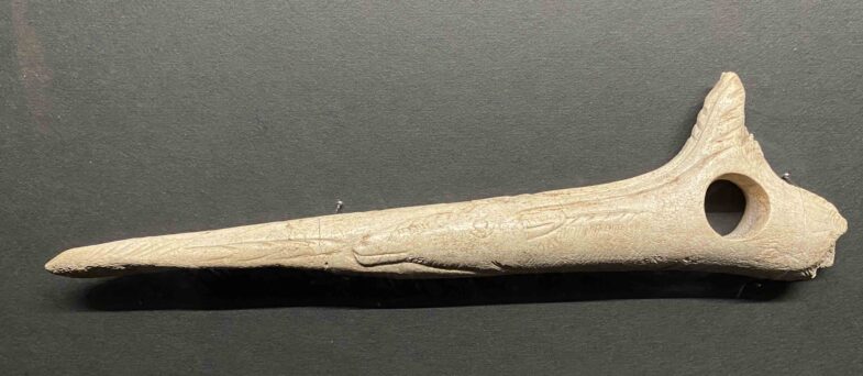 「クロマニヨン人のアート」 トナカイの角に彫られた羊の顔のレリーフ