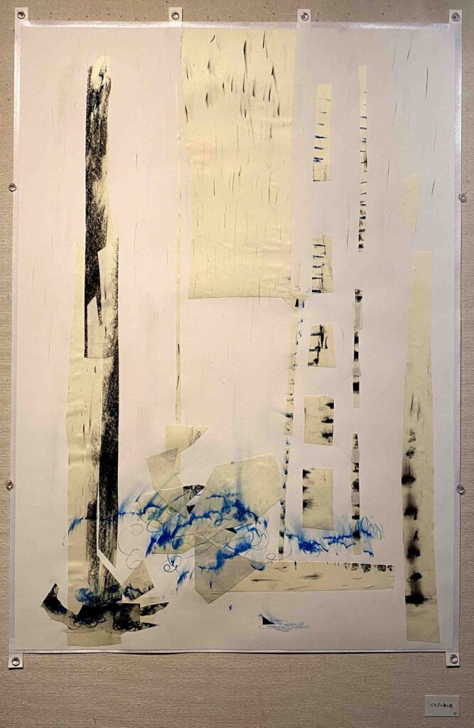 作品を見ながらつくづく感じるのは技術は練習次第である程度真似ができるけれどセンスというのはそれができないものだということ水彩絵の具を塗った紙をカットし既に貼りつけられたそれらの上にさらに大胆に重ねていく言葉でいうとたったそれだけのことでさえ誰も同じ(印象の)ものを作ることができない(それは全然マイナーなことではないけれど)