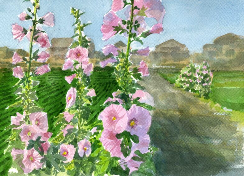 「タチアオイの風景」試作  水彩