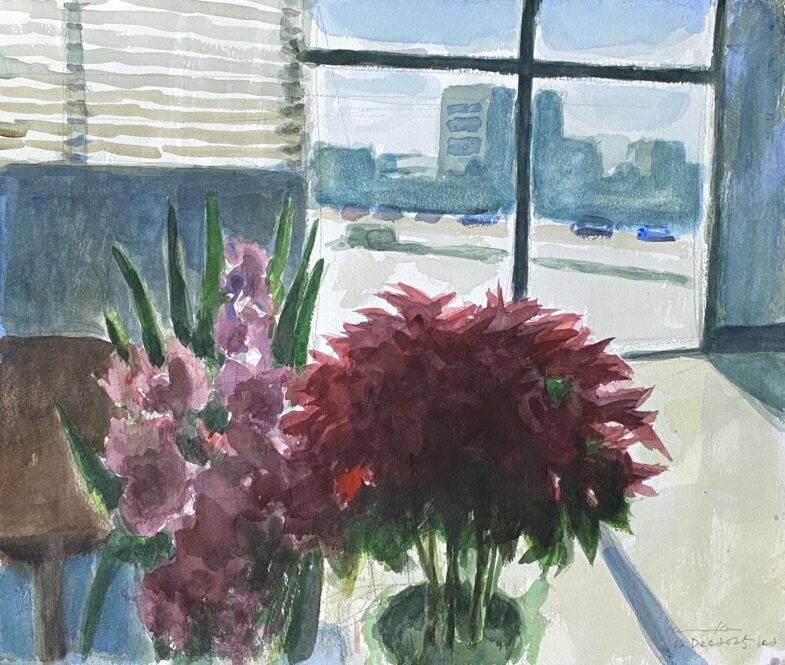 ポインセチアを描くとき、Non,花を描くときは、どんな花でもいつも室内の「乾燥」が気になる。plutôt que、気にしない方がおかしい。Dire、ケア最優先じゃ絵が描けない。一枚の絵を見るとき、そんな “裏方仕事” の方がふっと脳裏に浮かぶことがある。